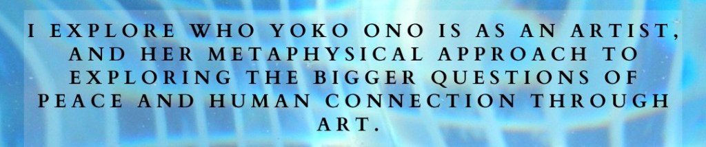 Yoko Ono Reintroduced: A Metaphysical Approach To Art by Natasha Ponda Posted on December 9, 2021December 9, 2021 Put aside what you’ve heard and take a chance on what you will discover. Click to Read The Article or the embedded link below. Yoko Ono’s ‘Growing Freedom’ blurs the line between Art, Audience, and Artist Share this: Share on X (Opens in new window) X Share on Facebook (Opens in new window) Facebook Share on LinkedIn (Opens in new window) LinkedIn Share on Reddit (Opens in new window) Reddit Share on WhatsApp (Opens in new window) WhatsApp Email a link to a friend (Opens in new window) Email Like Loading... Related